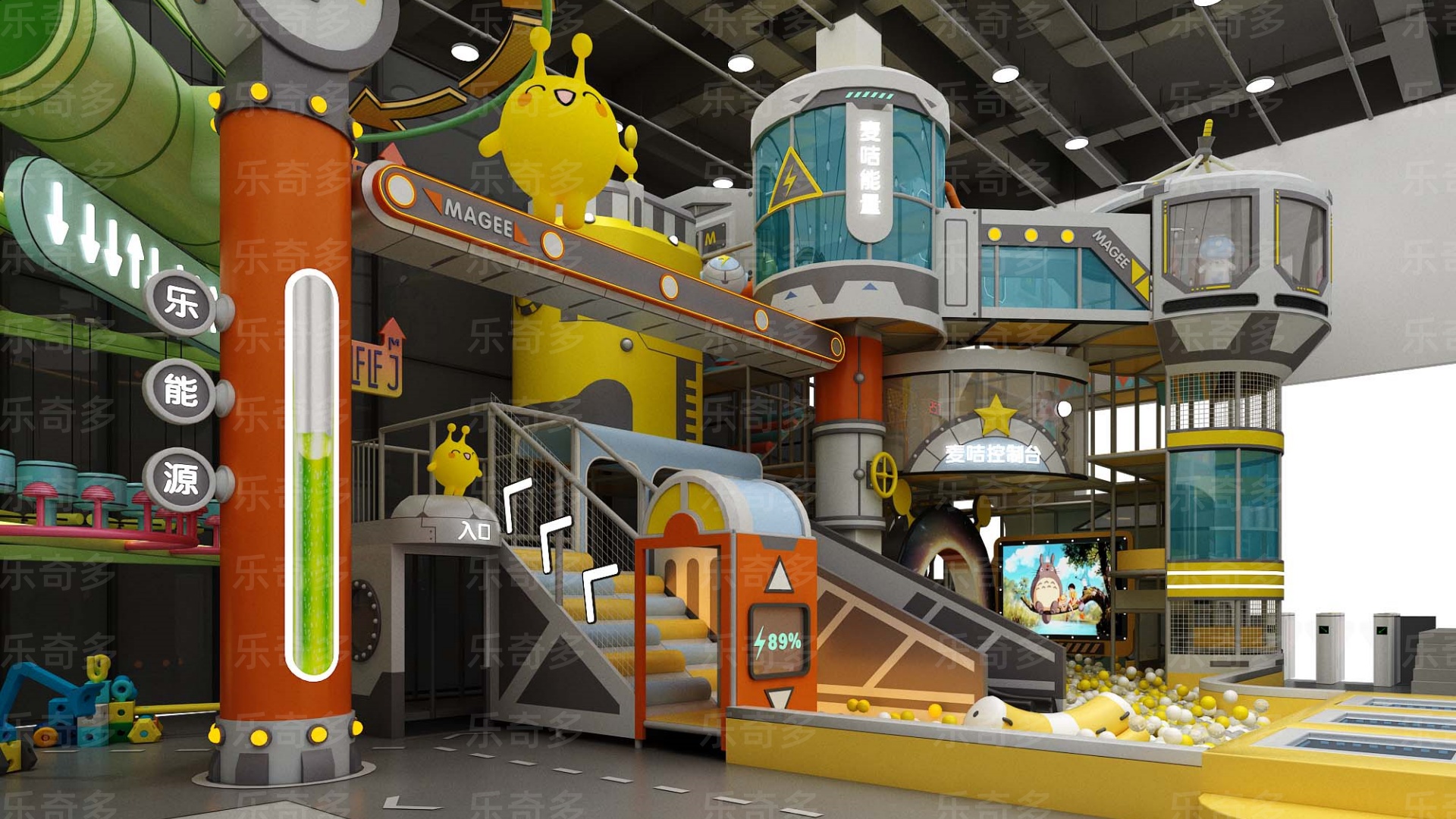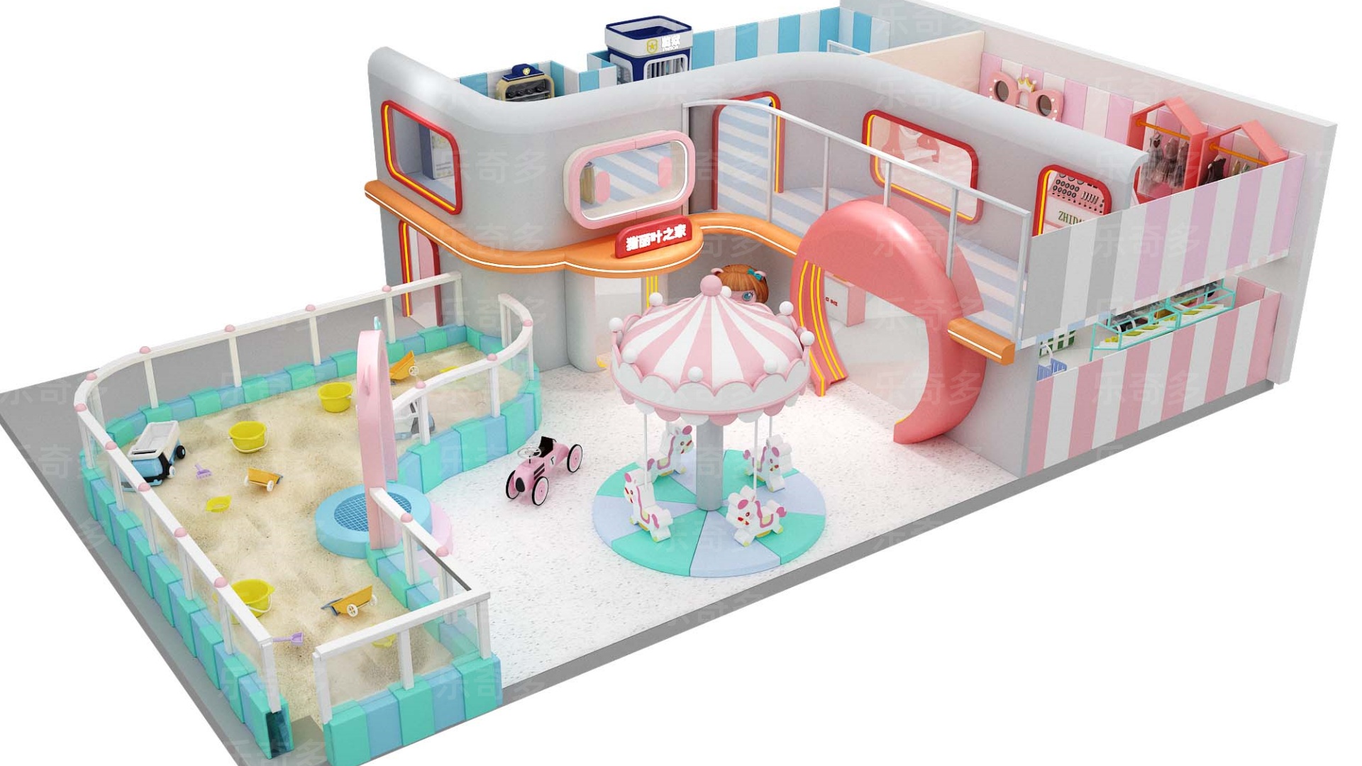 項目玩法:沙池探寶,海洋球池,波浪滑梯,互動投影,組合滑梯,手工區,彈跳迷宮、兒童小蹦床,角色扮演,公主屋,親子餐廳等。