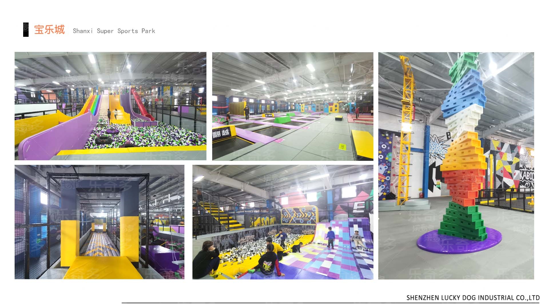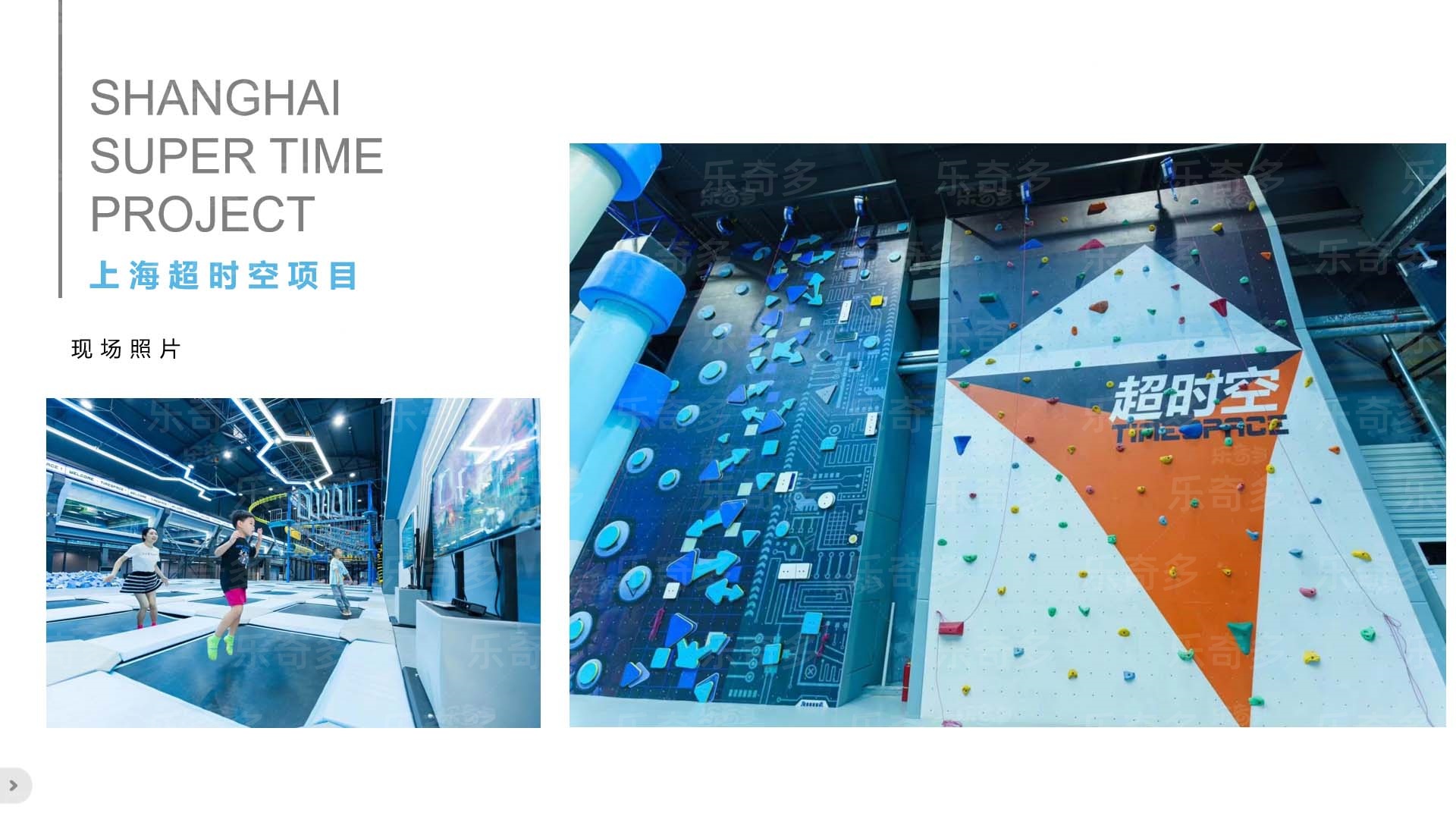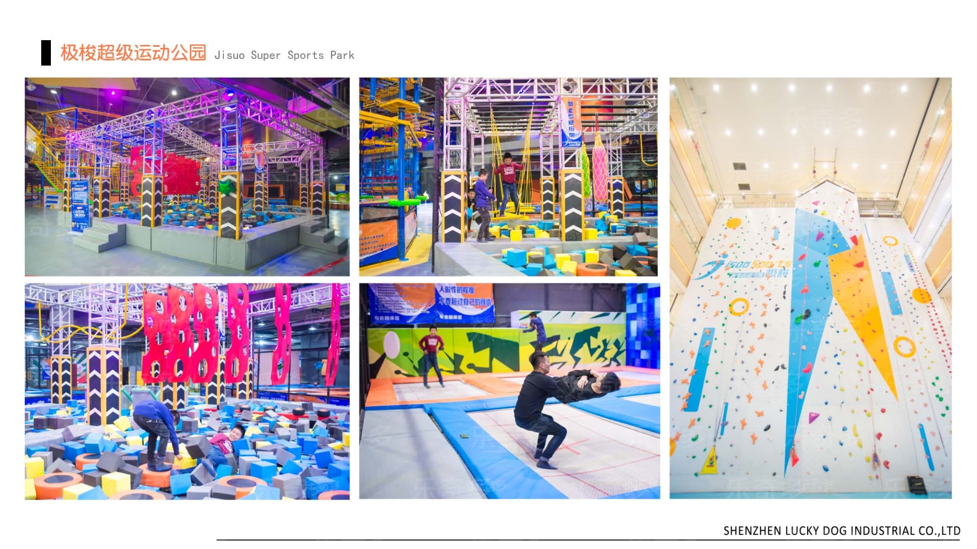 項目玩法:專業蹦床、自由蹦床、走避墻、螺旋滑梯,波浪滑梯,互動投影,忍者拓展,創意攀巖,抱石攀巖,信仰之躍,梅花樁,高空拓展等。