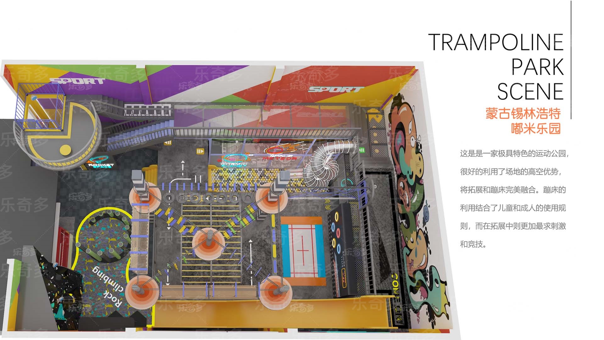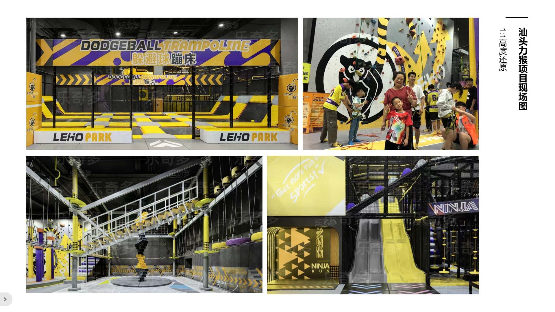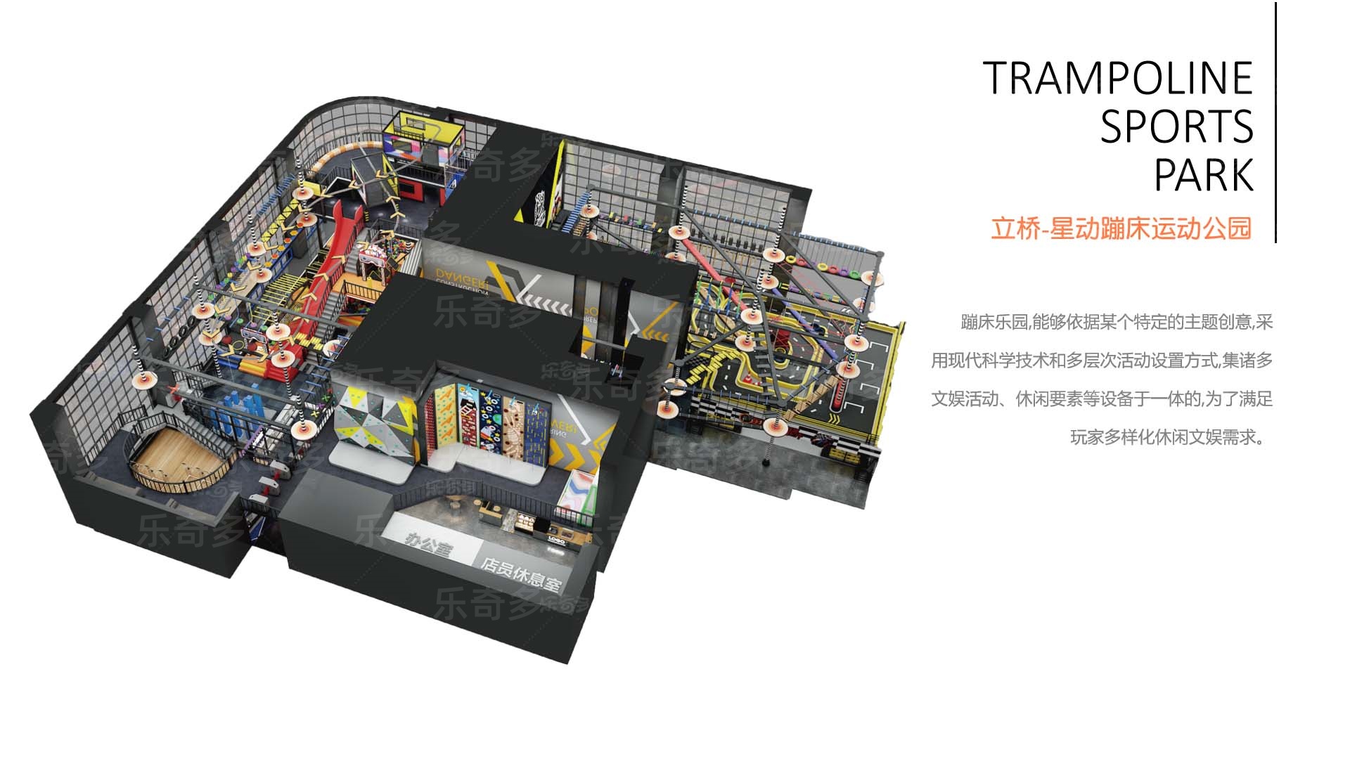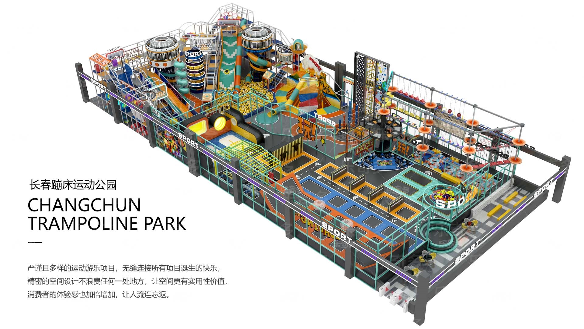 項目玩法:專業蹦床、自由蹦床、走避墻、螺旋滑梯,波浪滑梯,互動投影,忍者拓展,創意攀巖,抱石攀巖,信仰之躍,梅花樁,高空拓展等。