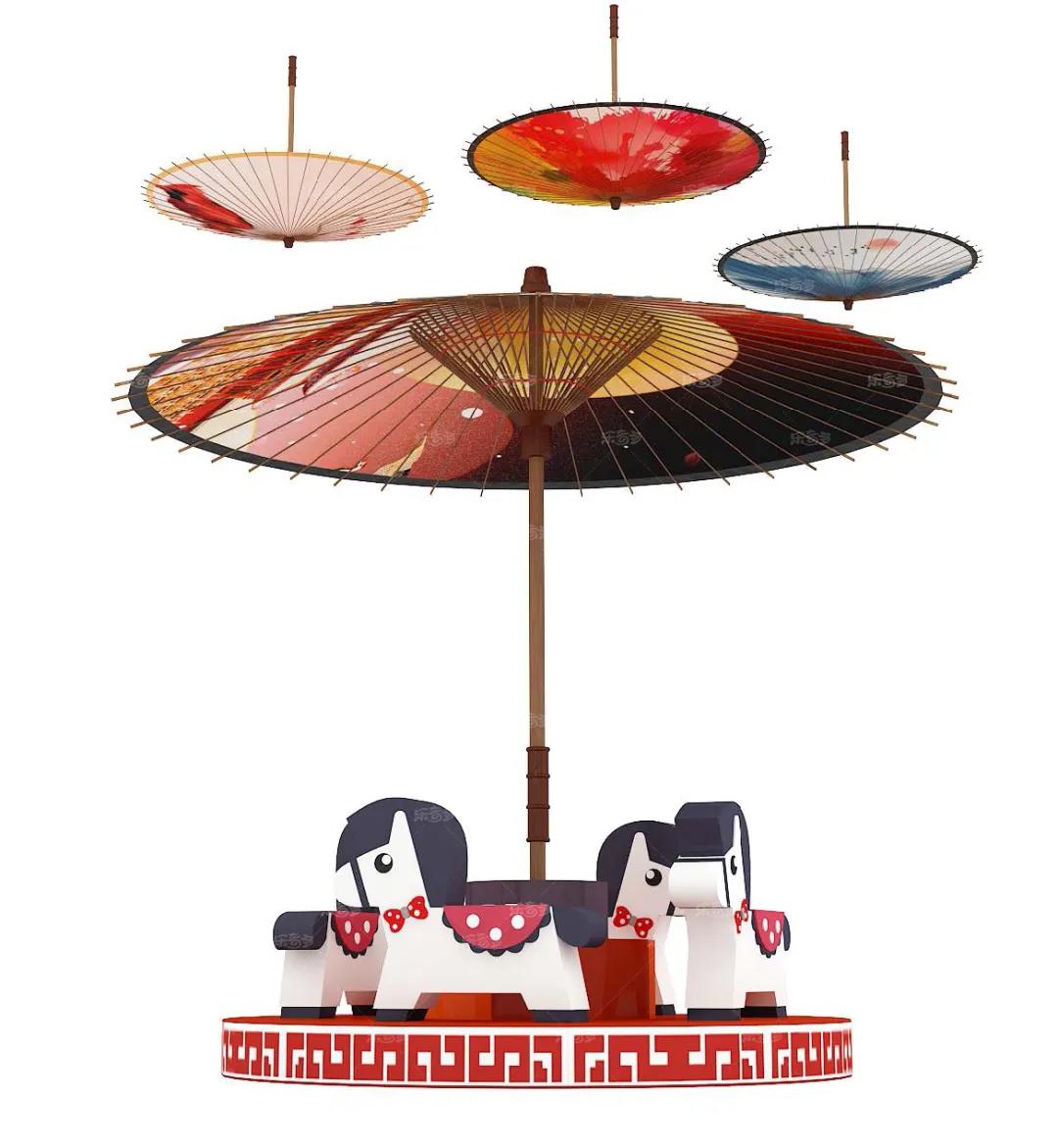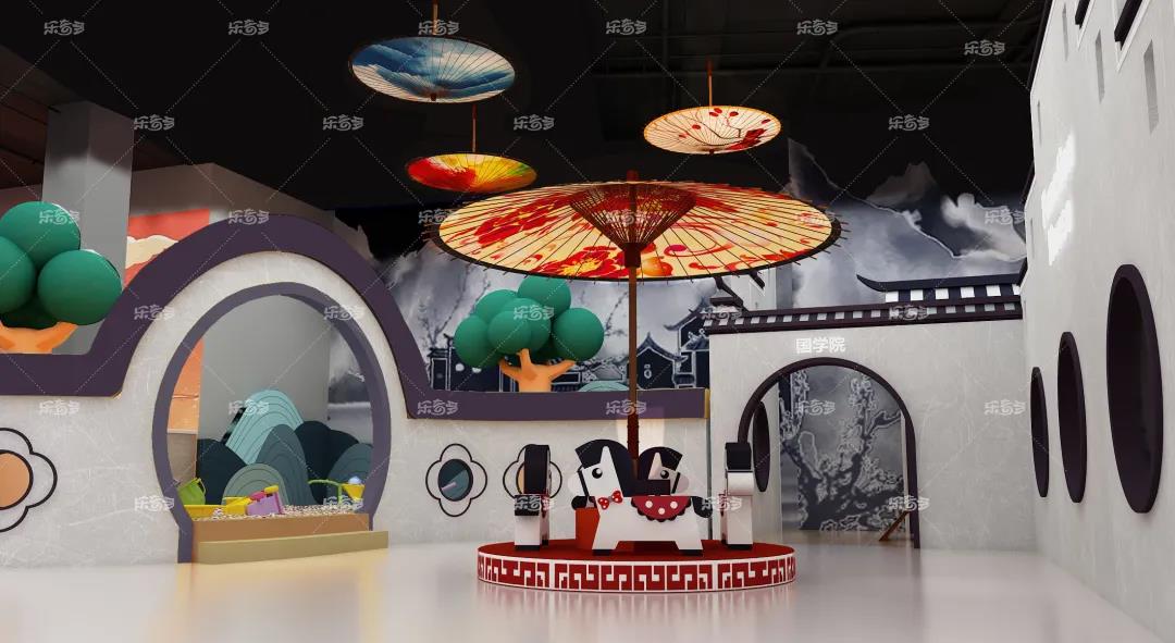 3.油紙傘轉(zhuǎn)馬煙雨蒙蒙,小朋友們來(lái)到了江南,這里青石綠苔,雨點(diǎn)打在紅瓦上,濺起漣漪。我們的小轉(zhuǎn)馬,做成了油紙傘的造型,在下面就仿佛來(lái)到了別樣的江南,轉(zhuǎn)上一圈,別有一番滋味?!狤ND—何處是神州?“讓我們走進(jìn)國(guó)風(fēng)樂(lè)園,體驗(yàn)真正的中華文明吧!”