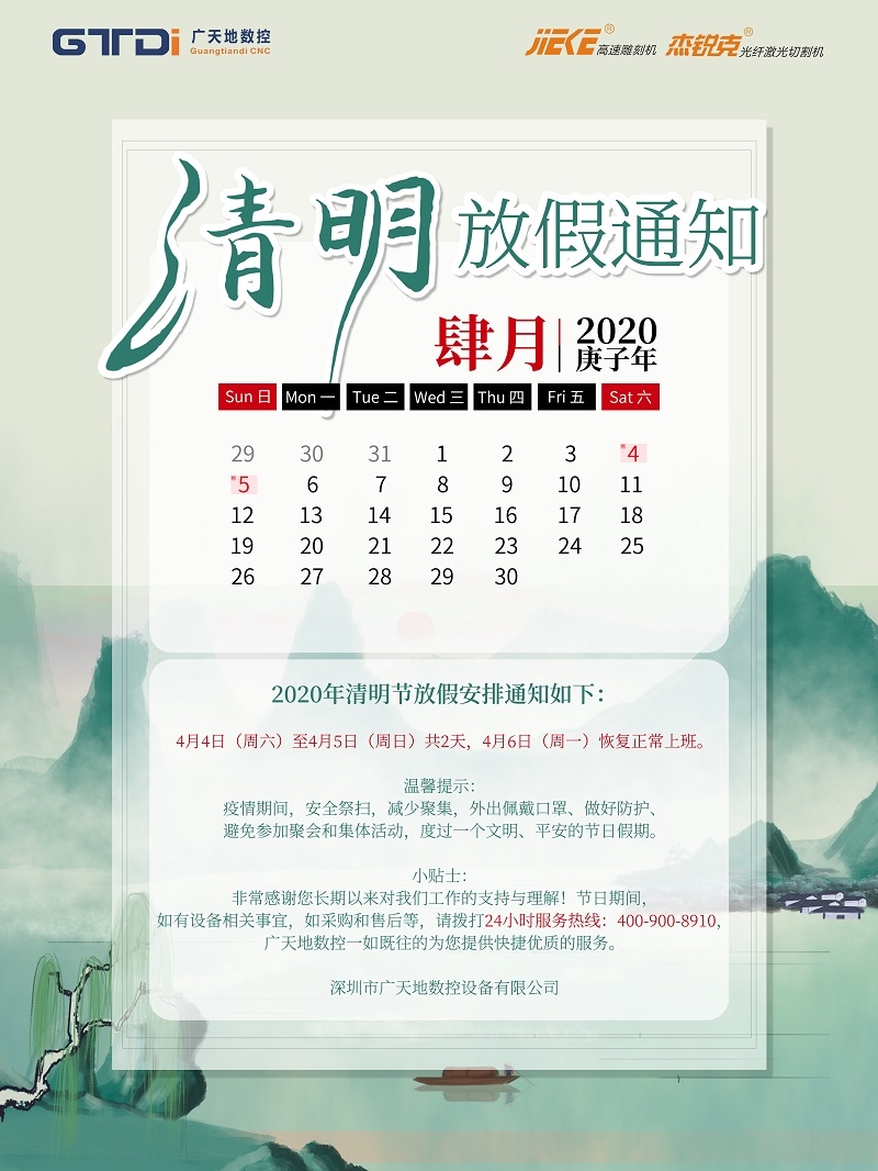 廣天地數控2020年清明節放假時間安排