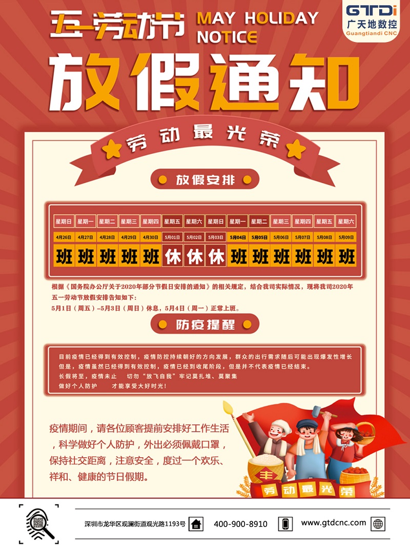 2020年廣天地數控公司五一勞動節放假時間安排