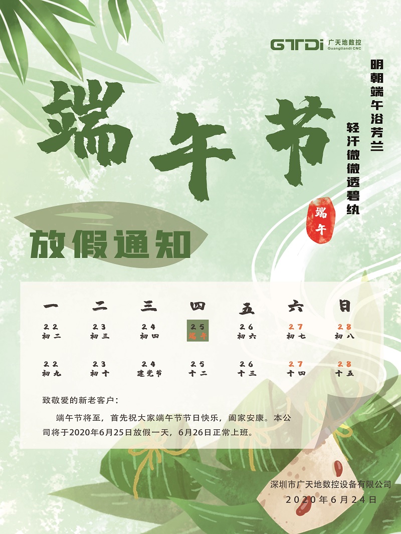 廣天地數控2020年端午節放假時間通知