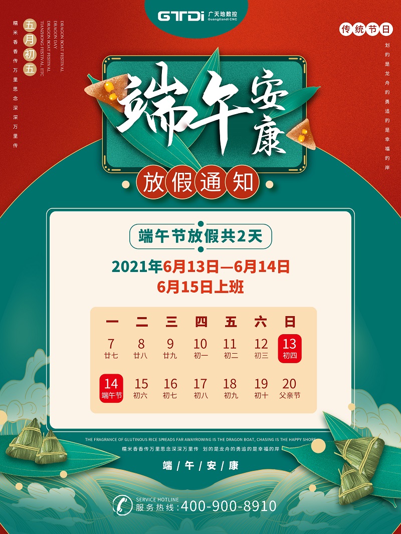 當前位置: 資訊?>?企業新聞 > 廣天地數控2021年端午節放假時間安排 < 返回列表