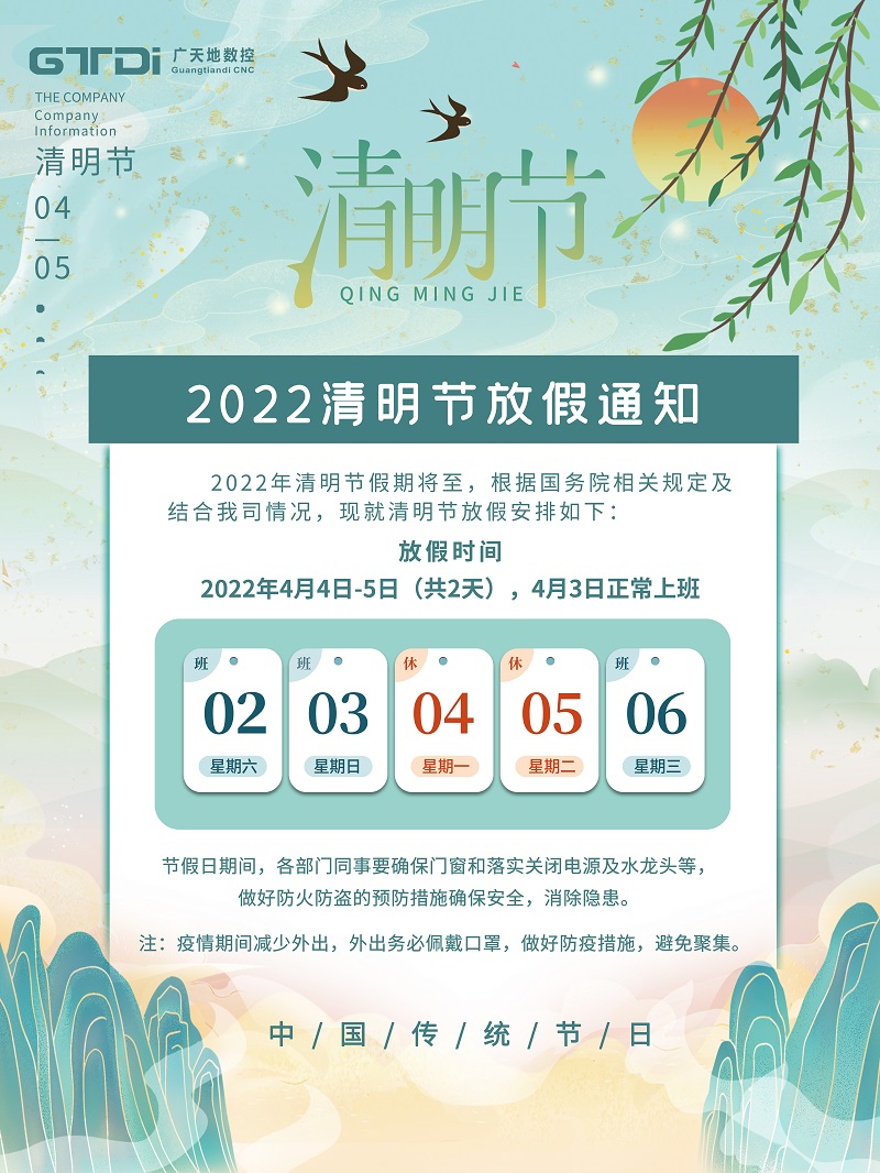 廣天地數控2022年清明節放假時間安排通知
