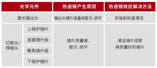 2、切割頭/焊接頭加工設備不同光學元件鏡片產生熱透鏡效應的解決方法: